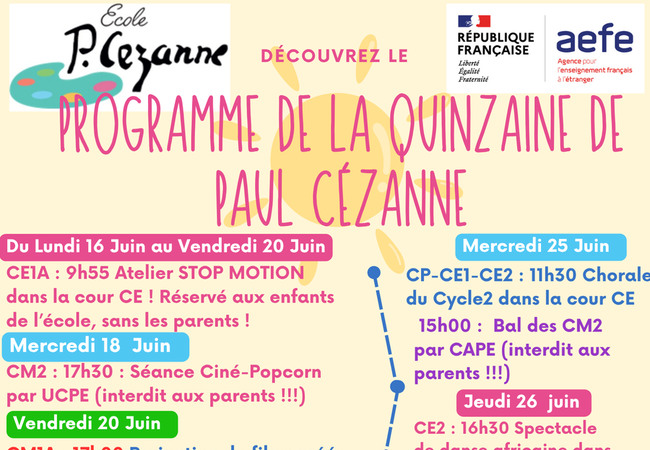 Semaine de la langue arabe – École Paul Cézanne (Rabat) La dernière semaine avant les vacances de fin d’année, les élèves de la maternelle au CM2 ont vécu une aventure linguistique et culturelle exceptionnelle à l’occasion de la Semaine de la langue …